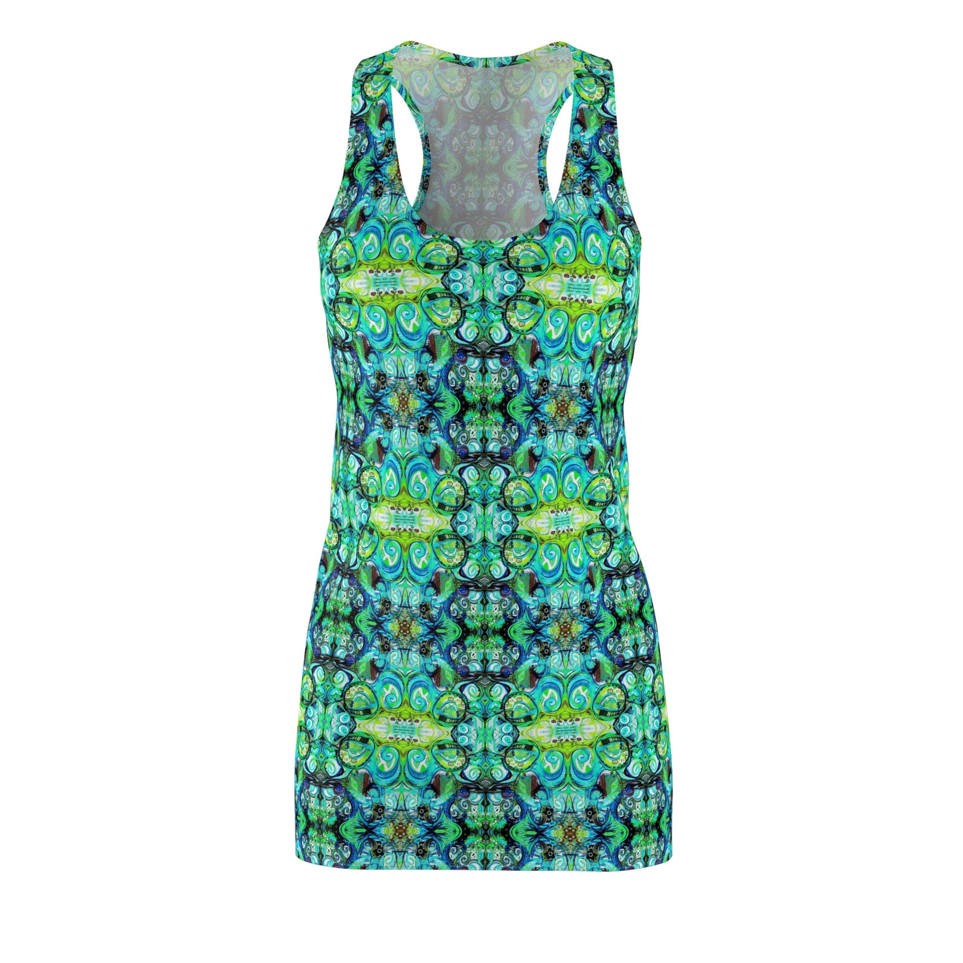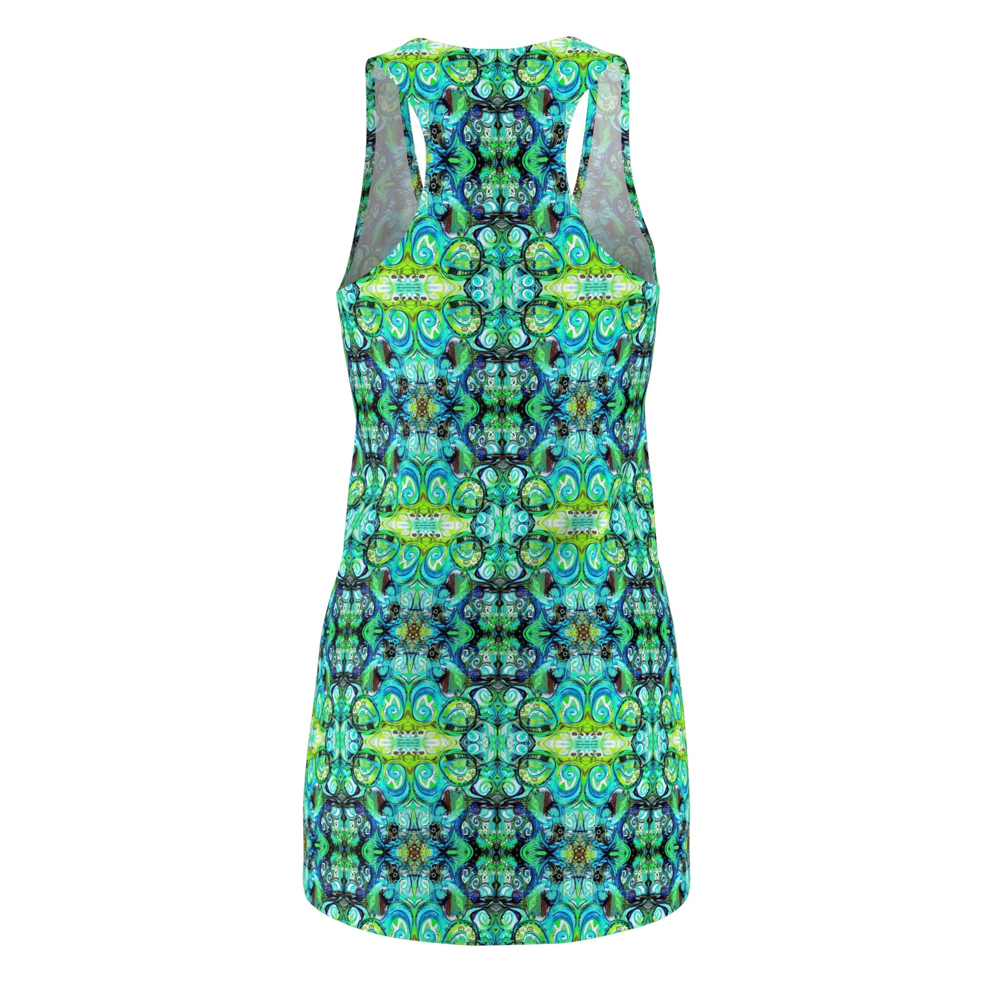 Feminine and stylish, yet comfortable and lightweight... This racerback dress is appealing from every angle. Inspired by the freedom of creativity, it will instantly become everyone's all time favorite. Great for the beach, neighborhood BBQ or stroll about town.