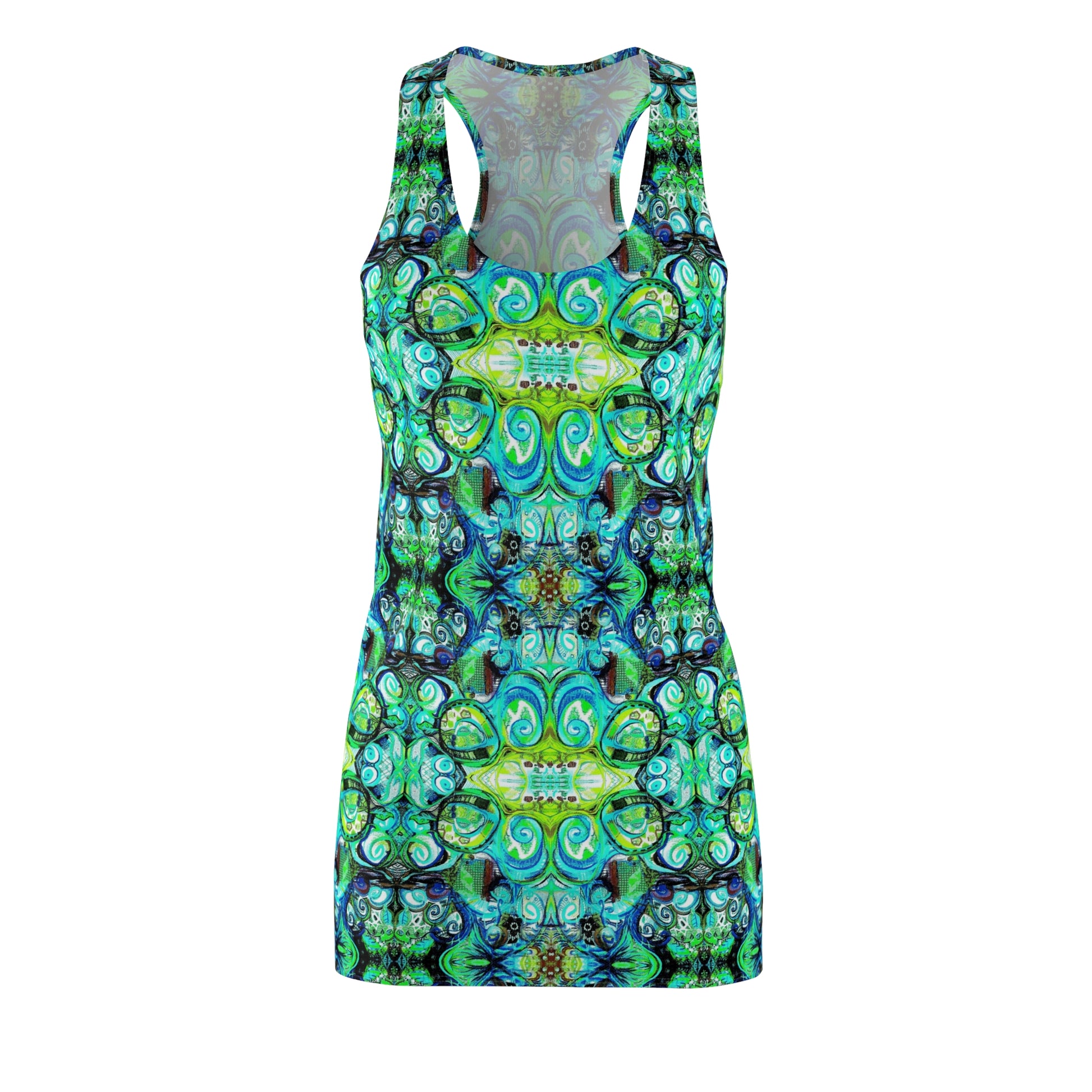 Feminine and stylish, yet comfortable and lightweight... This racerback dress is appealing from every angle. Inspired by the freedom of creativity, it will instantly become everyone's all time favorite. Great for the beach, neighborhood BBQ or stroll about town.